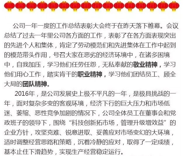 公司2016年度總結(jié)表彰大會(huì)圓滿召開(kāi)