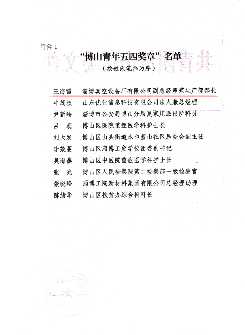 摘要:公司副總經(jīng)理王海雷同志榮獲“博山區(qū)青年五四獎?wù)隆狈Q號