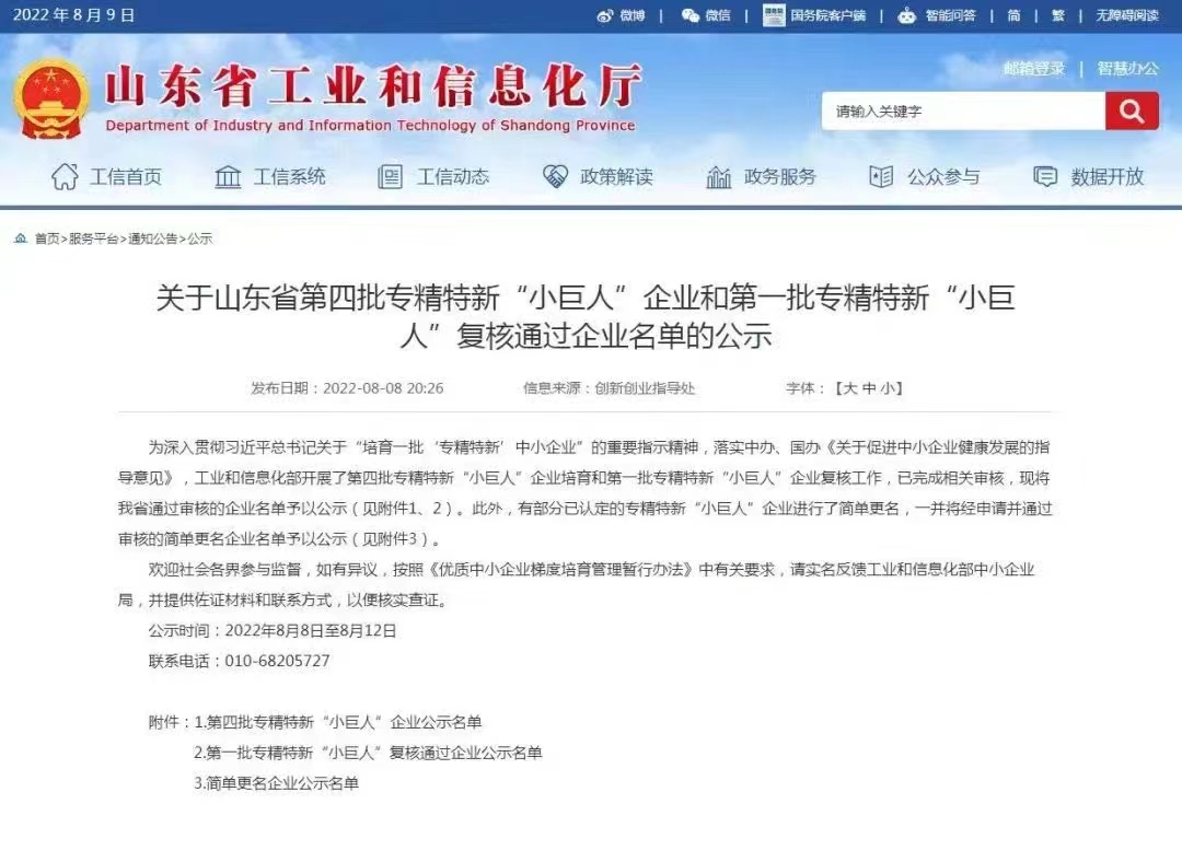 近日,山東省工業(yè)和信息化廳轉(zhuǎn)發(fā)工信部《第四批專精特新小巨人企業(yè)名單的通知》,在工信部授予山東省三百余家小巨人企業(yè)名單中,雙山真空榜上有名!